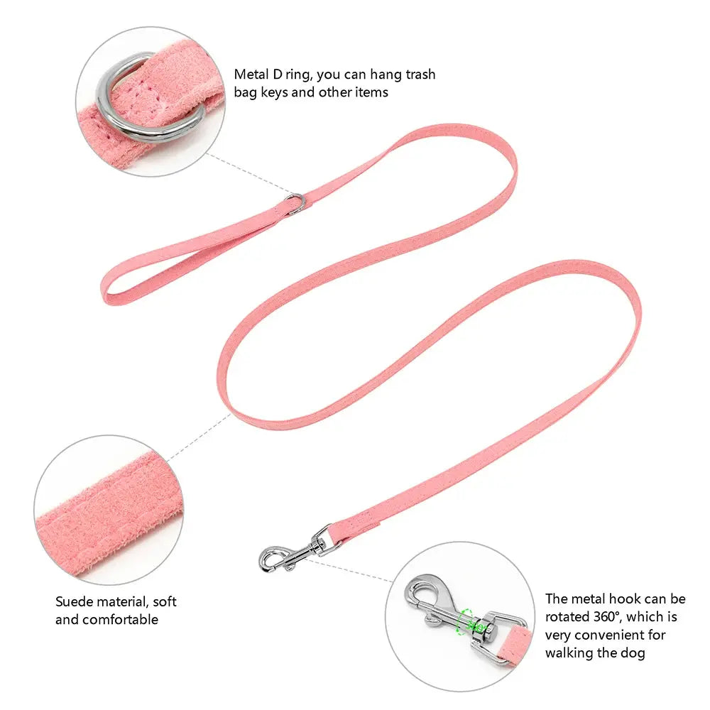 Dieses elegante Geschirr-Set mit funkelnden Strasssteinen kombiniert Stil mit Komfort. Das weiche Material und die verstellbare Passform machen es perfekt für kleine Hunde und Katzen – mit niedlicher Schleife als besonderes Detail.
