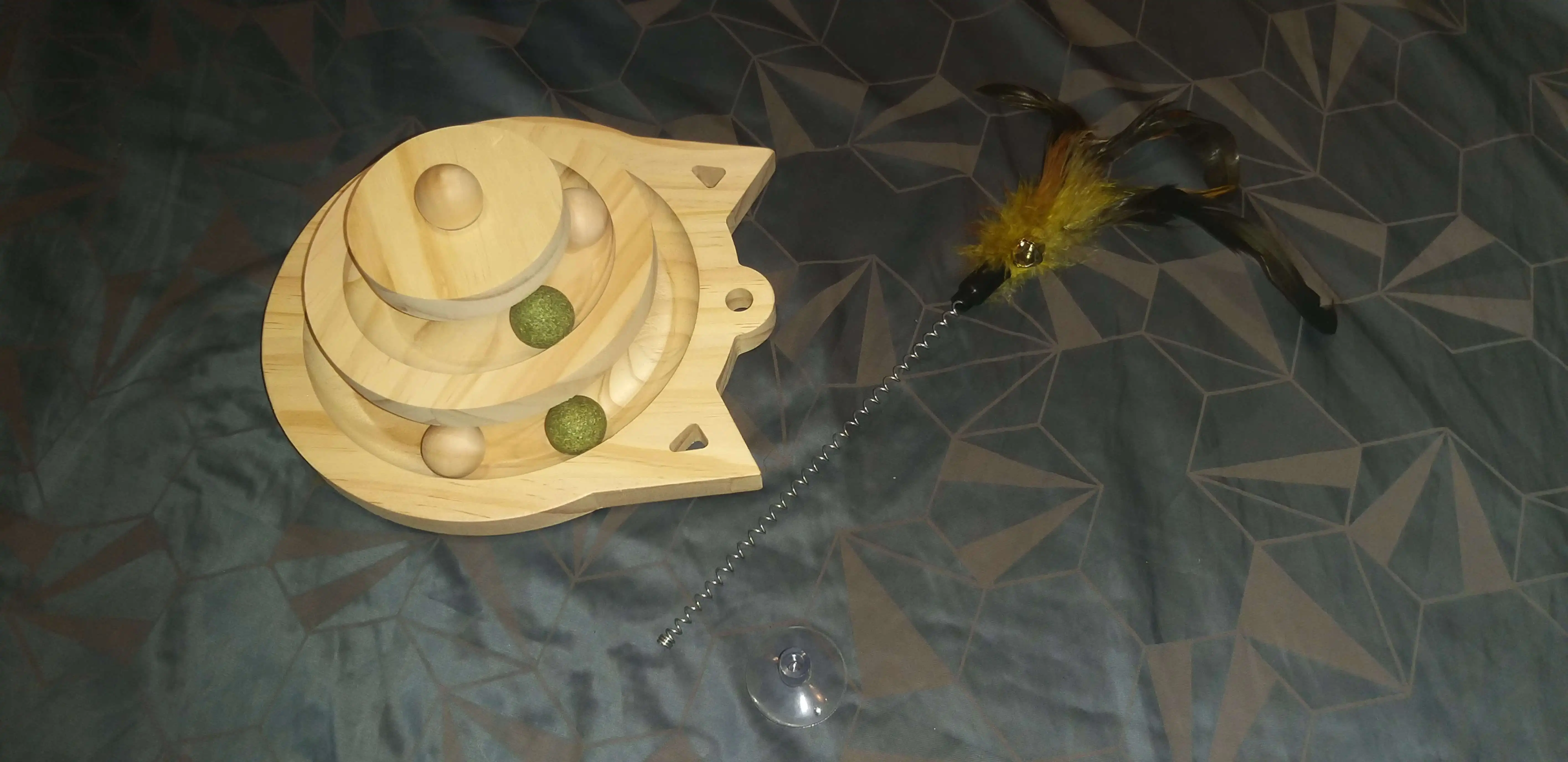 Katzenspielzeug Turm aus Holz 3 Ebenen mit Bällen