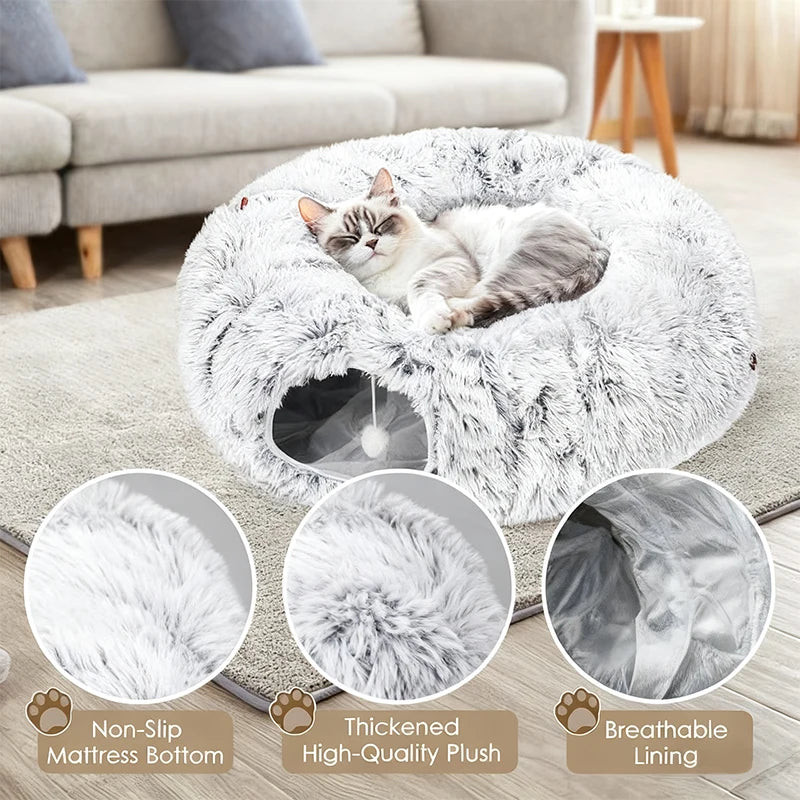 Katzentunnel Bett 2-in-1 – Multifunktionaler Spieltunnel & Schlafplatz für Katzen