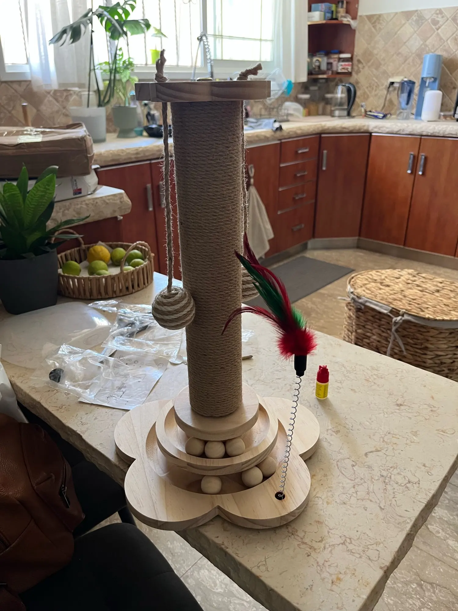 Katzen Kratzbaum Plattenspieler mit Sisal-Kratzbrett und Spielbällen