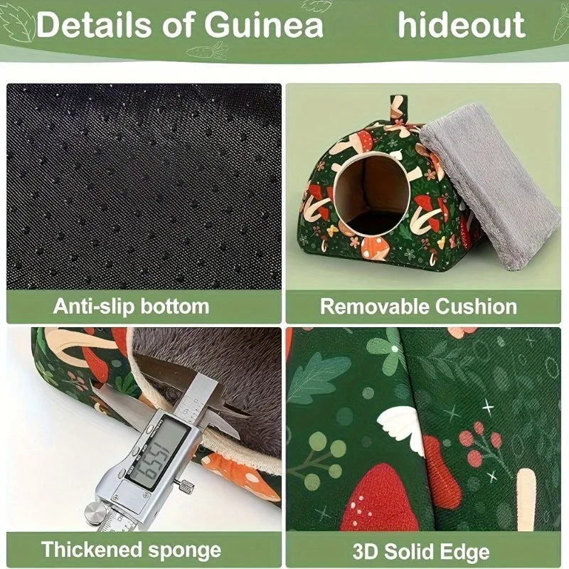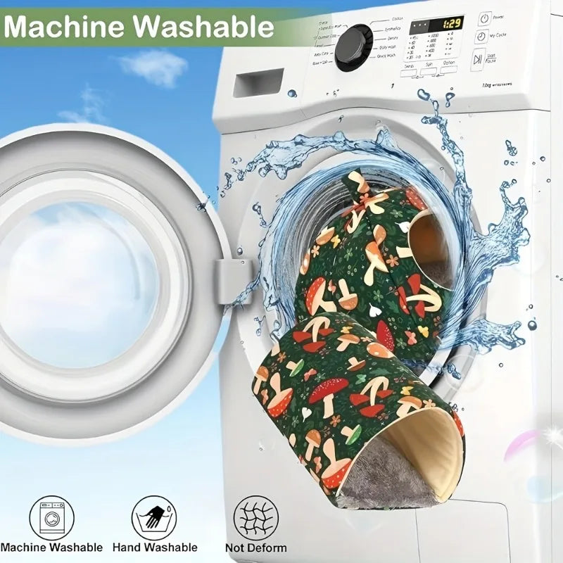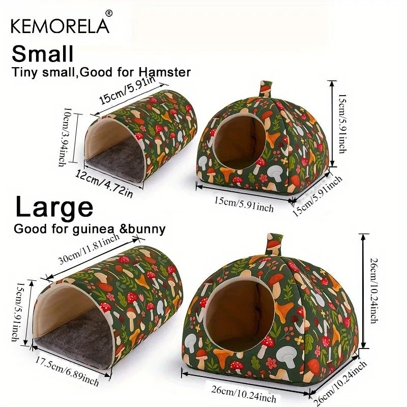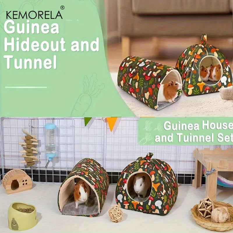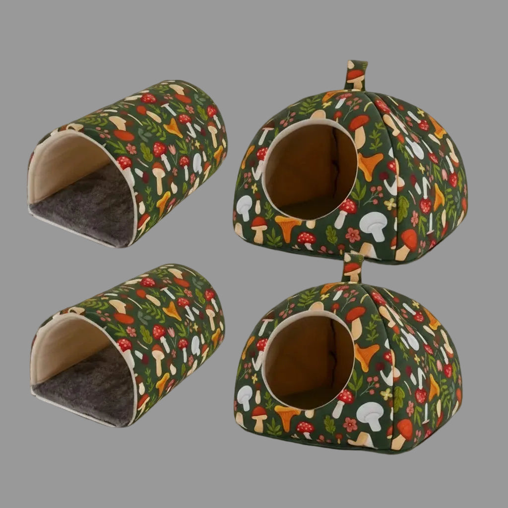 Dieses 2er Set bietet Ihren Kleintieren kuschelige Verstecke und Tunnel. Mit bezauberndem Pilz- und Blumen-Design, waschbar und weich – 351g, für Meerschweinchen, Hamster und Kaninchen.