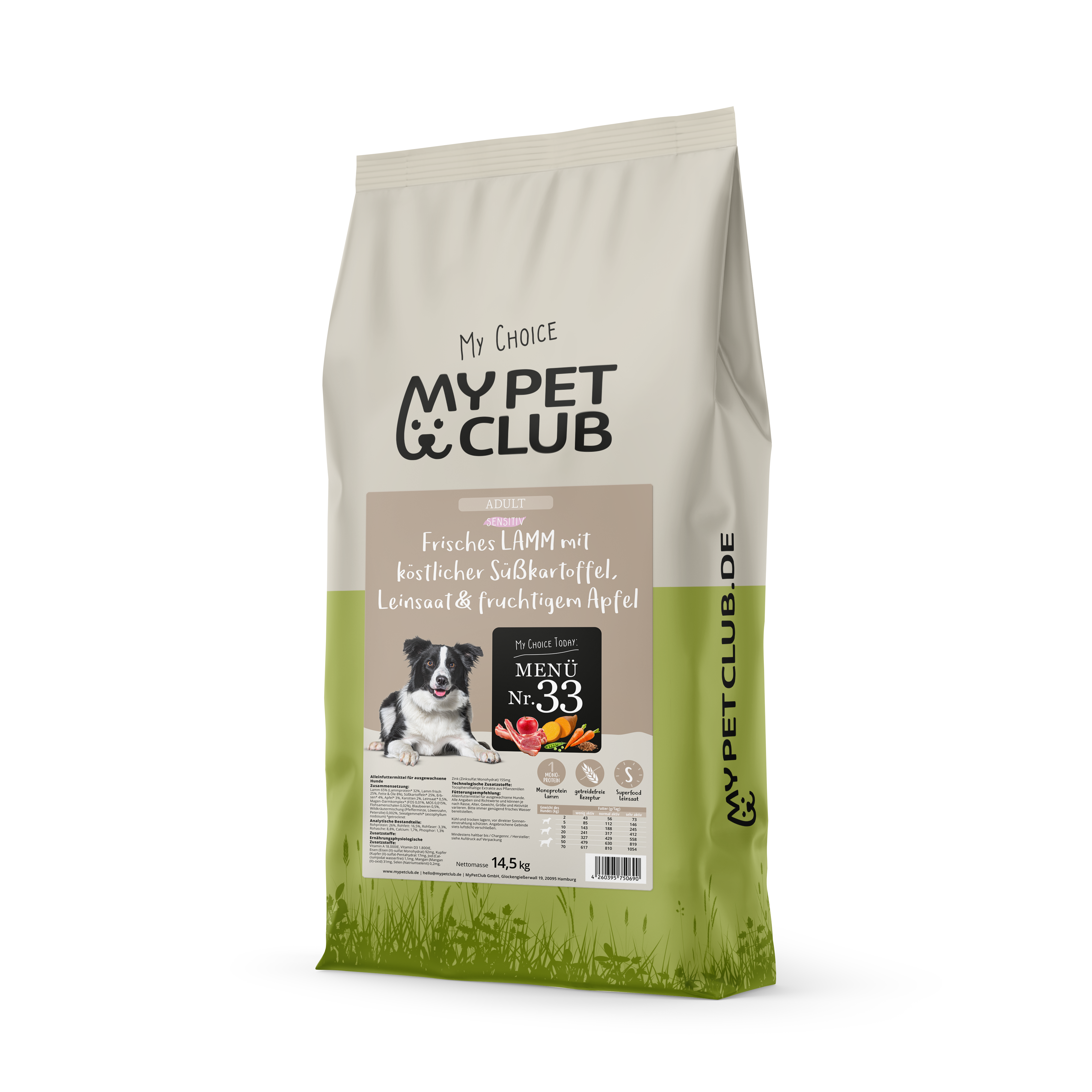 OHNE GETREIDE: „MyPetClub“ verzichtet auf die Verwendung von Getreide und Soja, da es langfristig zu Verdauungsproblemen oder Allergien kommen kann. Daher nutzen wir kalorienarme, frische Acker-Süßkartoffeln, die dem Hund wichtige Ballaststoffe, Eiweiß, Vitamine & Mineralstoffe liefern